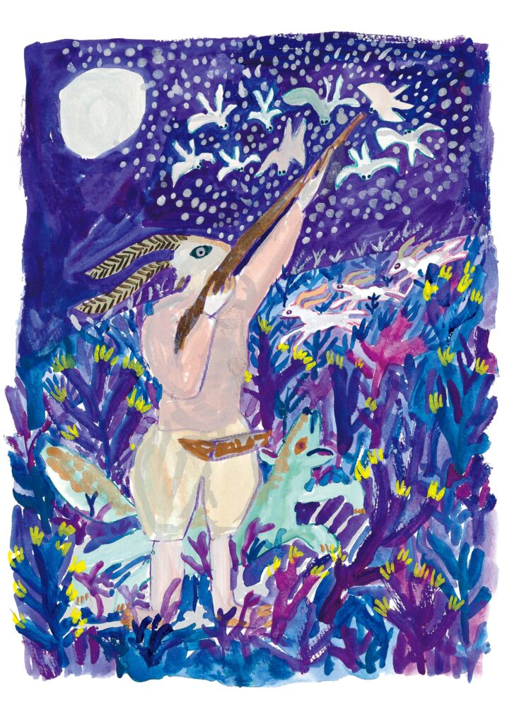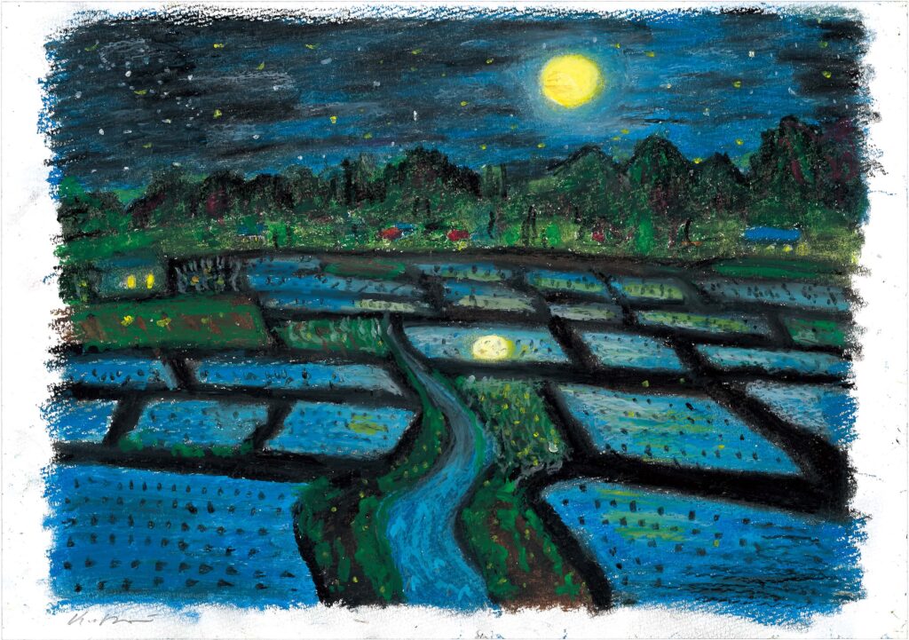 - ミロコマチコさん (下絵「夕べの狩」長谷川春子さん作)